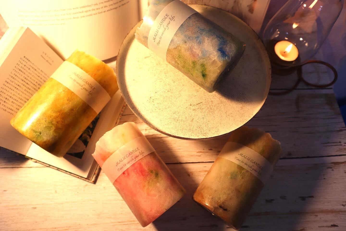 大豆からとれたワックスのみを使用しています。煤が出にくく、空気の浄化作用もあるといわれています。
